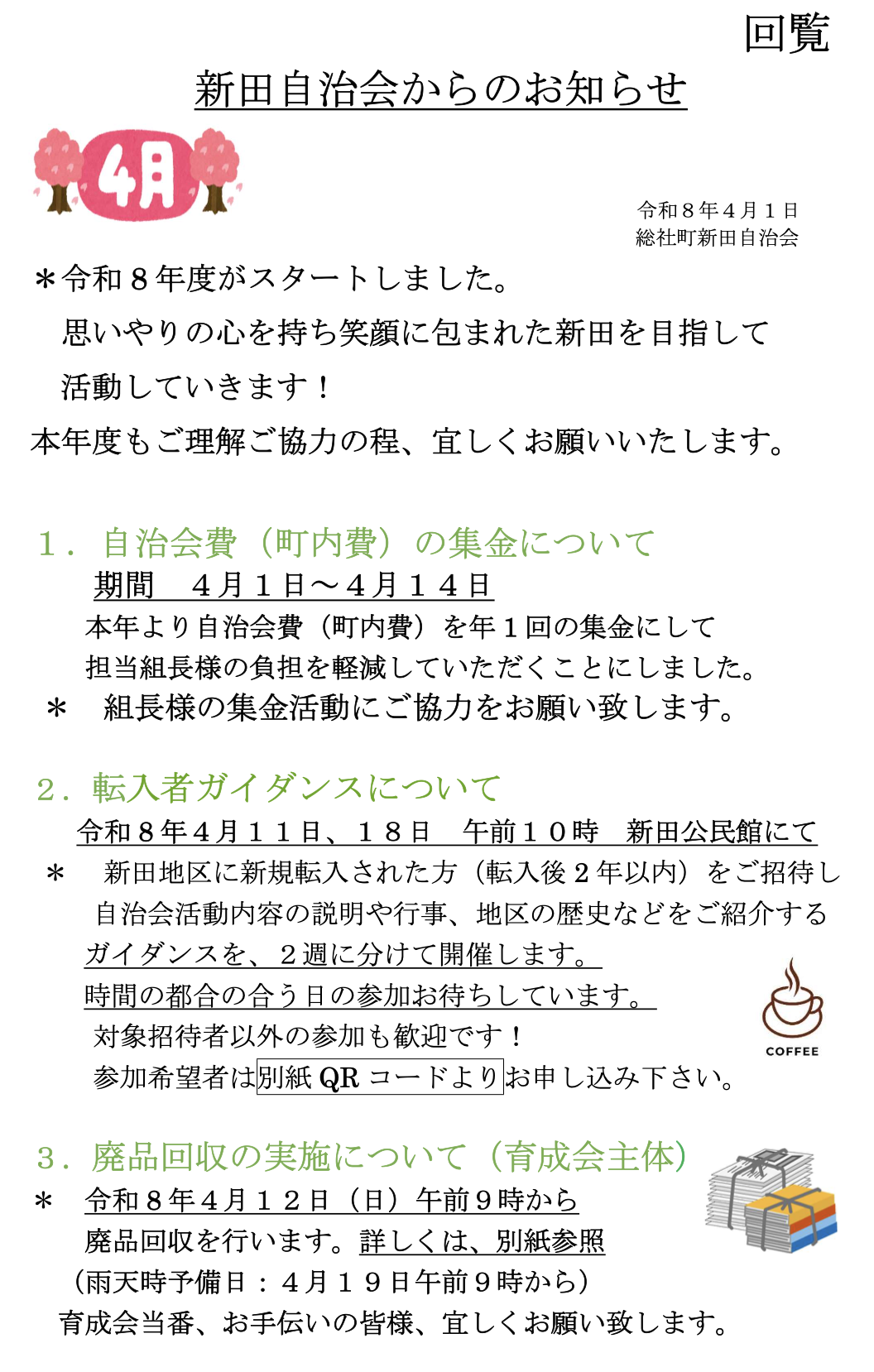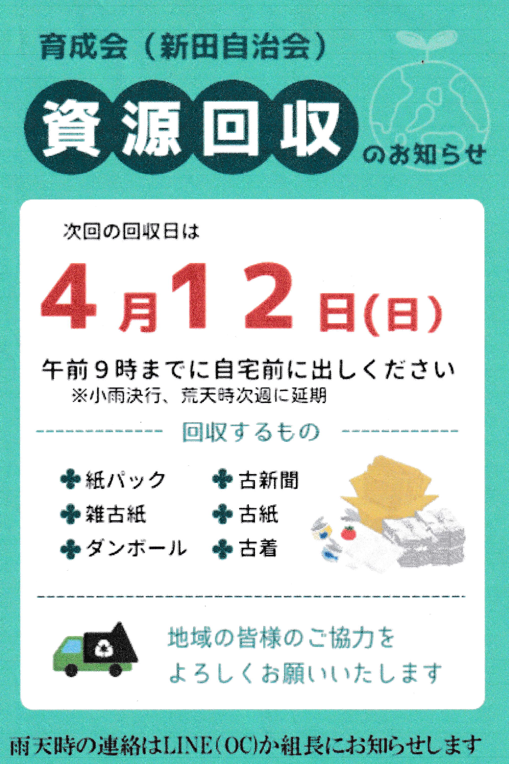 4月2日修正 1p 雨天予備日20日→19日4月2日追加 廃品回収のご案内...