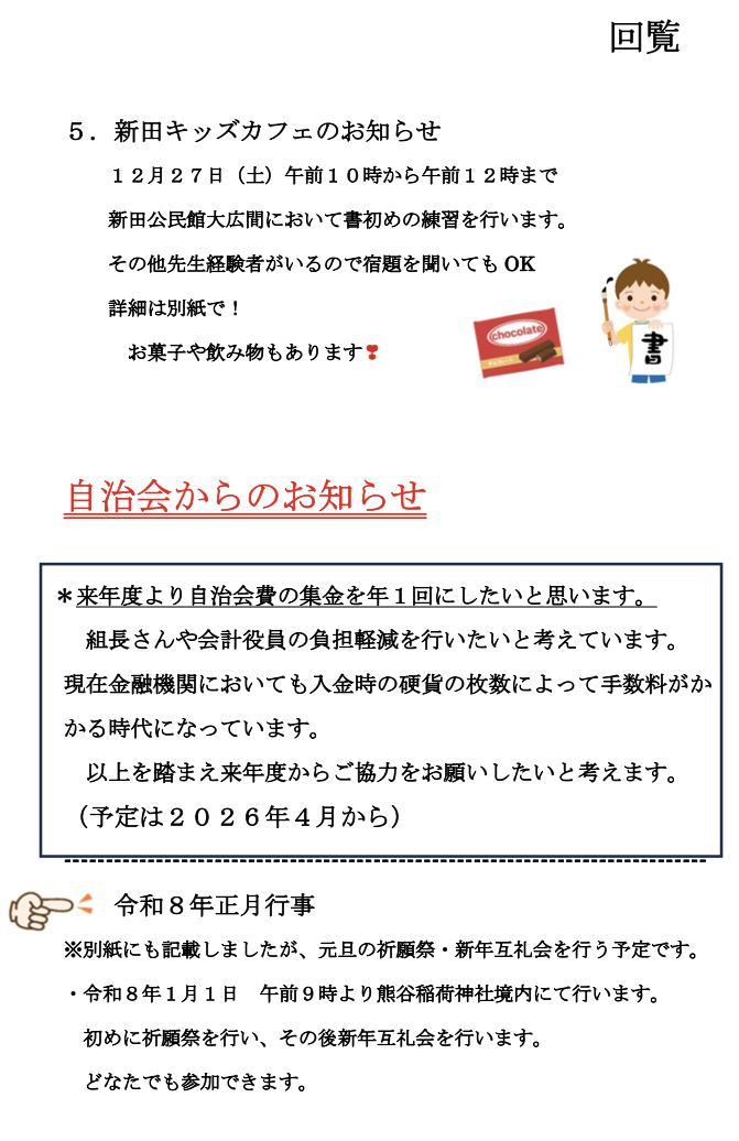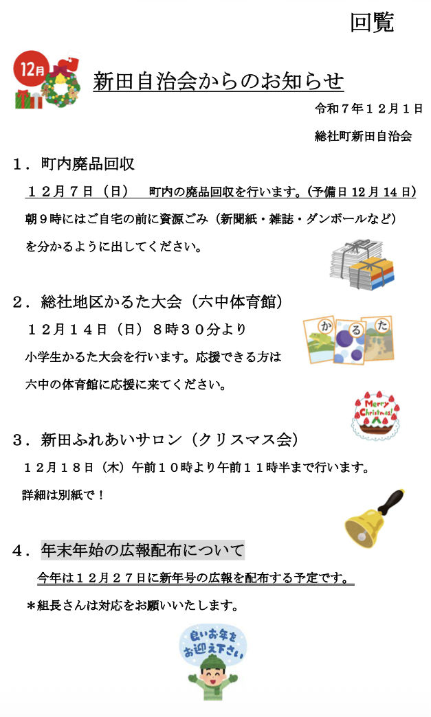 【自治会からのお知らせ】明日予定していました、新田地区のクリーン作戦は雨のため中...